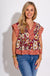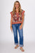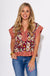 Stand out with this eye-catching pintuck top featuring a rich burgundy background adorned with a vibrant mix of prints. The exposed stitch accent along the contrast pattern band and placket adds artisanal charm, while slit sleeve bands bring subtle movement and edge. Lightweight and uniquely detailed, this top pairs perfectly with denim or tailored pants for a bold, polished look.