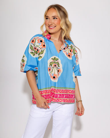 View full detailsDive into summer vibes with the Wanderlust Blooms Floral Top in dreamy blue! This boho-chic embroidered blouse brings a breezy, sun-kissed spirit t...