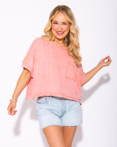View full detailsIntroducing our Easy Days Mineral Washed Crop Top - the essential addition to your spring wardrobe. This oversized top is made from a soft, comfy m...