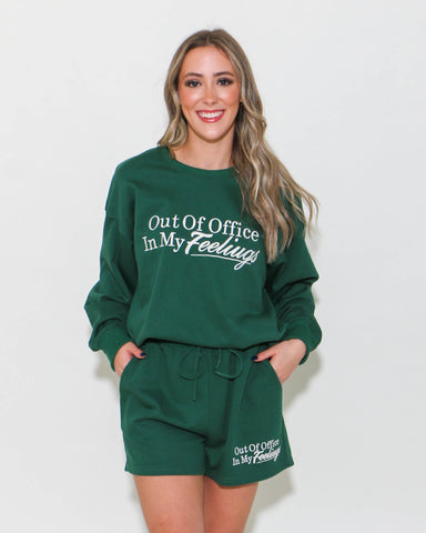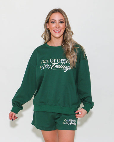 Upgrade your casual wardrobe with our green "Out of Office" Round Neck Long Sleeve Sweatshirt. This cozy sweatshirt features a classic round neckli...