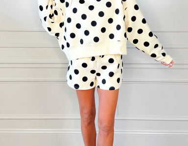 Effortless style meets everyday comfort in these polka dot shorts. The classic black and white pattern pairs with an elastic waistband for a relaxe...