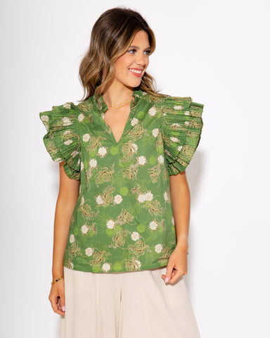 View full detailsA romantic nod to vintage charm—made classroom-ready. The Heirloom Garden Top features soft pleated ruffle sleeves and neckline, adorned in a delic...