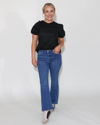 View full detailsVINTAGE HIGH RISE CROP FLARE JEAN COMFORT STRETCH DENIM, HIGH RISE WAIST, VINTAGE STYLE, DISTRESSED DETAILS, RAW HEM WITH DESTRUCTION, CROPPED LE...