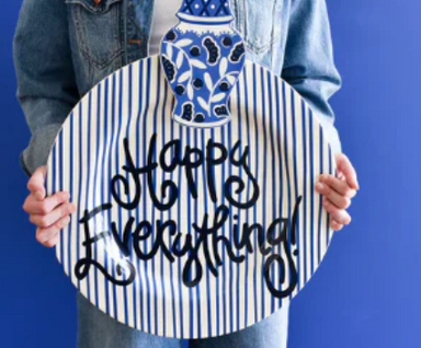 We can’t get enough of stripes! Our Indigo Skinny Stripe Big Happy Everything! Round Platter combines the organic look of hand-drawn indigo blue st...
