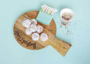 Style and sustainability at once with our Wooden Mini Happy Everything! Serving Board. Mango wood is sustainably harvested only after the tre...