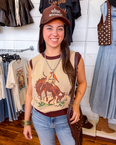Layer this black sheer top for effortless versatility. Delicate lace lines create visual interest while playful Western graphics—cactus, cowboy boo...