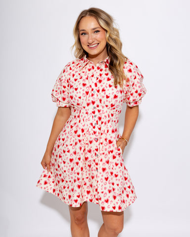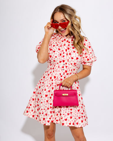 Elevate your Valentine's Day look with this charming white mini dress that captures playful romance. Featuring a flattering cinched waist, statemen...