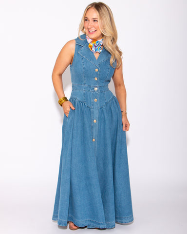 View full detailsElevate your wardrobe with our Denim Darling Gold Button Down Dress. This chic and versatile dress features a sleeveless collared design with gold ...