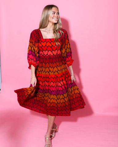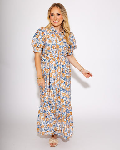View full detailsSoft and statement-making, this floral midi dress is your new go-to for back-to-school style! Featuring a tiered skirt, puff sleeves, and a round n...