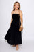 Effortless elegance meets everyday versatility in this strapless midi dress. The thoughtfully ruched waistline creates a flattering silhouette while the gracefully draped skirt flows with movement, offering a polished look that transitions seamlessly from casual to dressy occasions. Crafted in rich ash black, this piece combines sophistication with wearable comfort—the perfect addition to any wardrobe for those who appreciate timeless style with modern appeal.