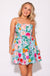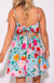 Introducing the Blossom and Bow Tie Back Mini Sundress! Made with a colorful floral printed cotton linen, this sleeveless mini dress is perfect for any summer occasion. With a stylish bow tie back and open back design, you'll turn heads wherever you go.