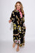 This ruffled high neck boho floral midi dress is designed to make a statement. Featuring a rich black background that allows the vibrant floral print to truly pop, this dress blends bold color with effortless elegance. The ruffled high neckline adds a romantic touch, while the half sleeves keep it comfortable and easy to wear. Finished with side pockets for everyday functionality, this midi dress is perfect for everything from casual outings to dressed-up occasions—just add boots or heels to complete the look.