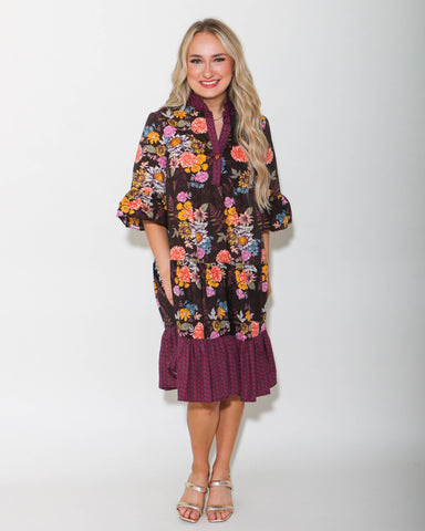 Get ready to turn heads in our stunning Cocoa & Blooms Dress! This sophisticated, yet flirty dress features a beautiful cocoa and bloom print t...