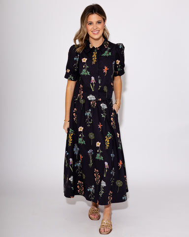 View full detailsTailored meets timeless in this navy floral shirt dress, featuring sweet puff sleeves and a crisp button-front closure. A contrasting accent band a...