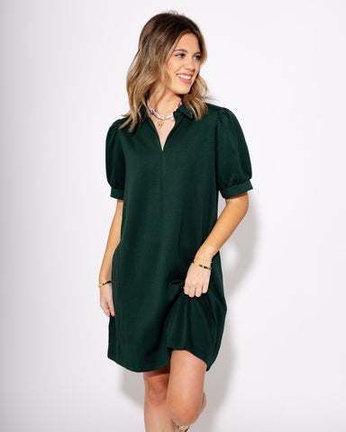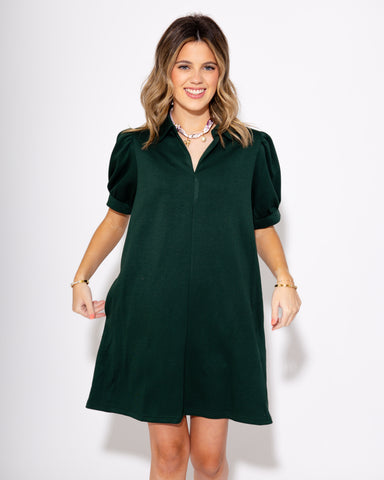 View full detailsStep into the effortless chic style of our Hunter Green Lane Mini Dress. The soft jersey material, open collared neck and puffed sleeves add a touc...