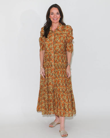 View full detailsThe Helen Dress in Jade Gold is the ultimate combination of style and comfort. With its long sleeves, stand collar, and convenient pockets, this ve...