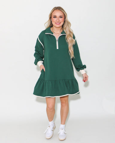 Discover the perfect blend of casual chic and functionality with our Solid Half Zip Collared Mini Dress. This long sleeve dress features a sleek ha...