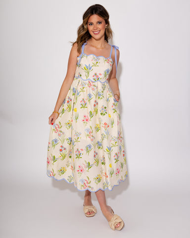 View full detailsSoft, sweet, and pure summer charm—this floral shoulder-tie midi dress is your go-to for sunny day adventures and carefree twirls. Painted with a d...