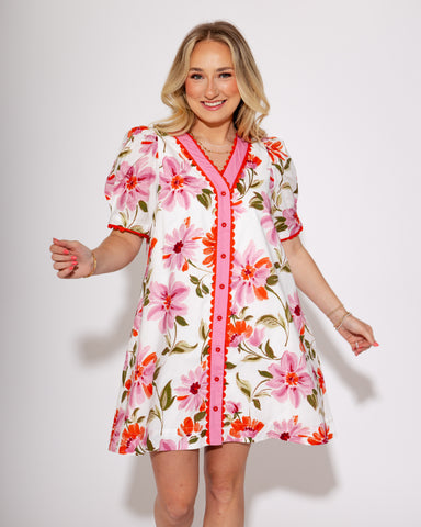 View full detailsElevate your style with our Floral Charm Scalloped Edge Mini Dress! Perfect for those back-to-school vibes, this vibrant mini dress brings a fresh ...