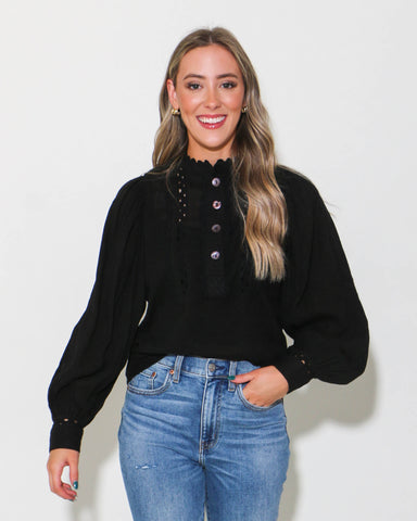 View full detailsAdd a touch of charming style to your wardrobe with our Ric Rac Trim Top! Featuring delicate ric rac detailing, this top adds a playful and feminin...