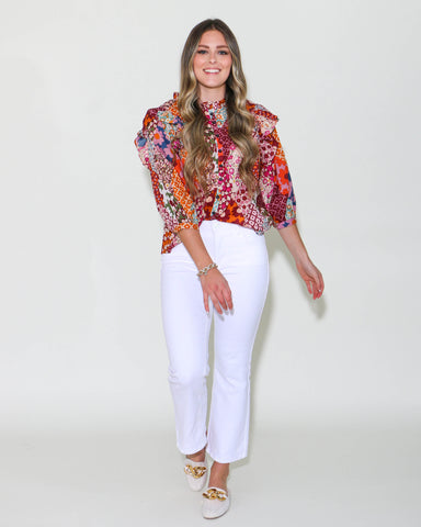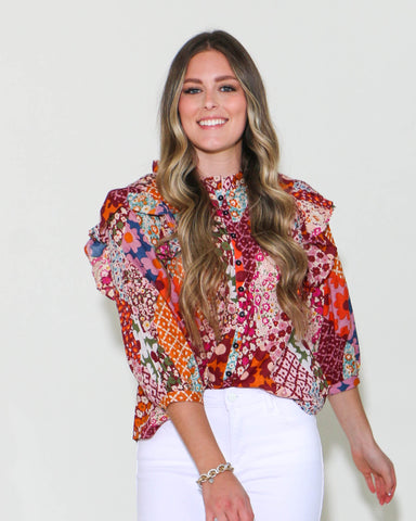 View full detailsIntroducing our Patchwork Peasant Top - a beautiful blend of colorful prints and delicate embroidery. Experience the comfort of lightweight fabric ...