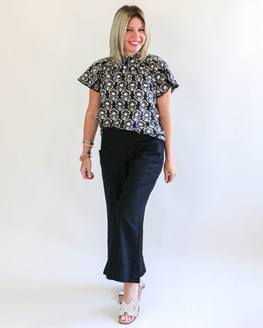 View full detailsAdd some style to your wardrobe with our quirky Block and Flutter Top in Black. The unique block pattern and flutter sleeves offer a playful twist ...