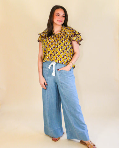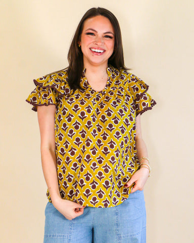 View full detailsExperience the ultimate comfort and style in our Flutter Block Top in Mustard! The lightweight, flowy fabric and trendy flutter sleeves add a touch...