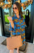 The Ivy Jane Bell Fleur Dress in Blue Mix is a charming mini dress featuring a button-down front and a collared neckline for a touch of classic style. The standout feature is the bell sleeves, adding a playful and feminine flair to the design. With its vibrant blue mix pattern, this dress is perfect for a casual yet chic look.
