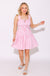 Experience effortless style in our Ruche and Bow Pink Striped Mini Dress! This lightweight woven dress features a trendy stripe pattern, adjustable smocked shoulder straps, and a flattering empire waist with ruching and a bow detail. The elasticated double back panel adds comfort and the lined interior provides a non-sheer look. Perfect for any occasion, this dress even has convenient side pockets!
