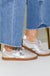 Elevate your style with this chic sneaker, crafted from suede and breathable mesh for a sophisticated yet casual look. The metallic silver faux leather stripes add a sleek, modern touch, making it a versatile choice for any wardrobe. The durable gum rubber sole provides excellent grip and comfort, perfect for all-day wear. Featuring light gray laces and a signature "S" metallic tag, this sneaker combines luxury materials with contemporary design. Step out in style and make a statement with every step.