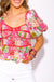 Fall in love with our Sweetheart Stitch Shirred Patchwork Top! Made from soft poplin fabric, this blouse features a beautiful floral patchwork print and contrast piping detail. The puff sleeves and sweetheart neckline add a touch of femininity, while the elasticated bodice and shirred shoulders provide a comfortable fit. Complete the look with a charming tie closure at the back.