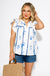 Experience the beauty and grace of our Blue Blossom Flutter Sleeve Top. Adorned with a vibrant floral print and delicate flutter sleeves, this pullover top is sure to make a statement. The contrasting trim inset adds a touch of elegance, while the semi-sheer, lightweight fabric keeps you cool and comfortable. Perfect for any occasion, this top will bring a touch of romance to your wardrobe.