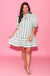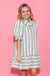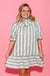 Experience the ultimate combination of comfort and style with our Stripe High Ruffle Mini Dress! The round yoke piping and puff sleeves add a touch of elegance to this dress, while the mid button closure makes it easy to wear. Not lined for a light and airy feel. Get ready to turn heads with this dress!