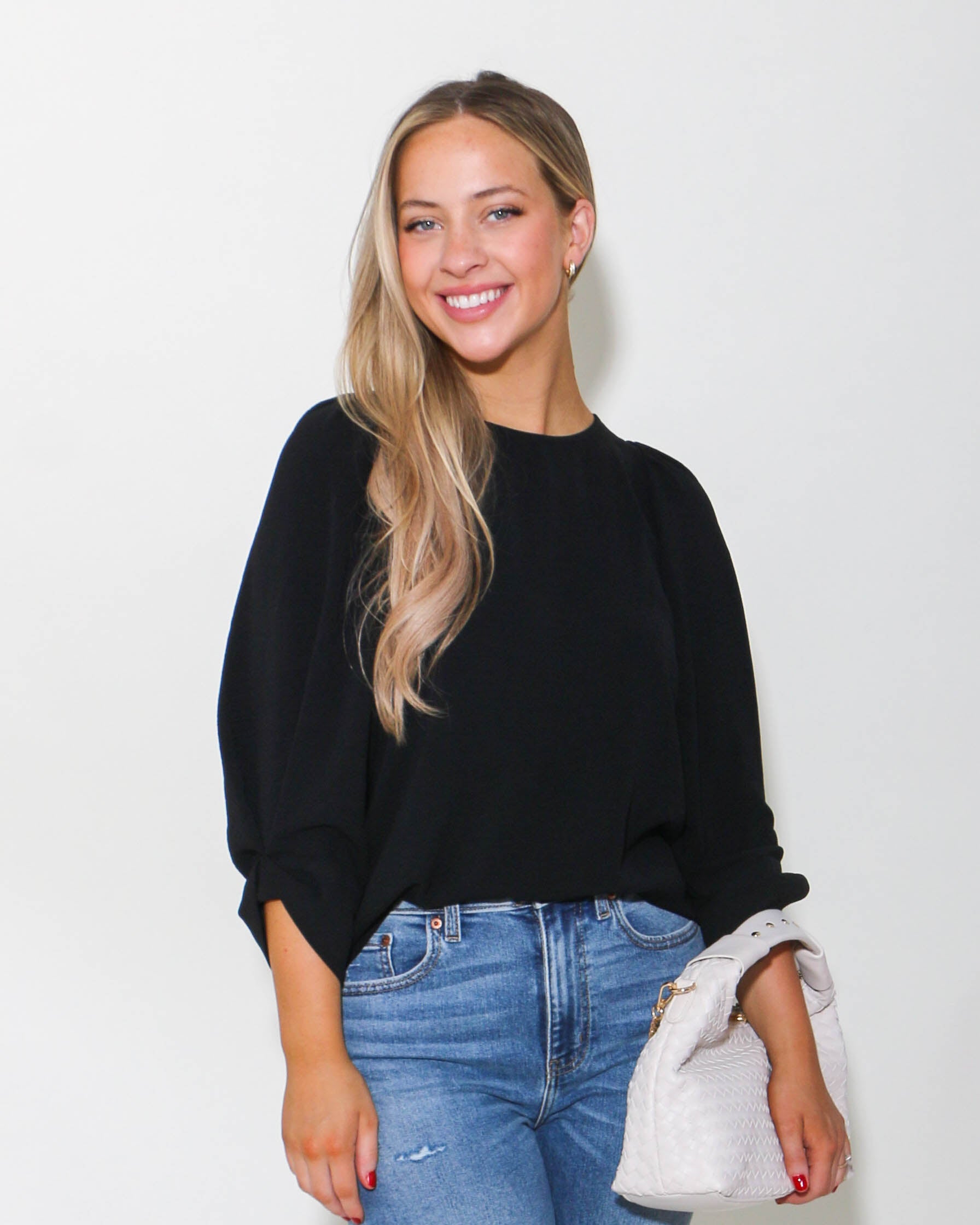 Tucked Sleeve Top in Black