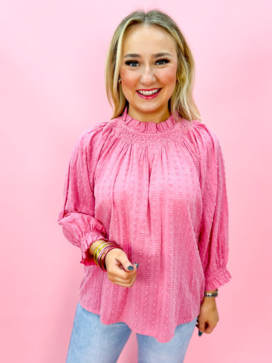 View full detailsElevate your style with our exquisite Clip and Stripe Top in Pink. This textured masterpiece is designed for those who appreciate the finer details...