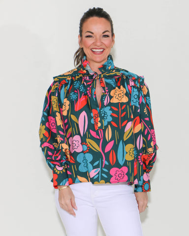A "Retro Garden Ruffle V-neck Top" is a fashionable and charming garment with a vintage-inspired design. It likely features a v-neckline adorned wi...