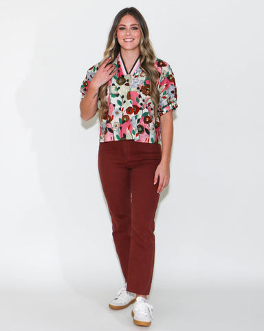 View full detailsThis delightful piece is not just a top; it's a fashion statement that exudes grace, color, and comfort. Adorned with a colorful, blooming floral p...