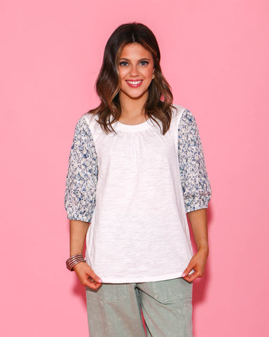 View full detailsIntroducing the JUANA Floral Top in White, a timeless piece that seamlessly blends elegance with a touch of whimsy. This half button-down beauty f...