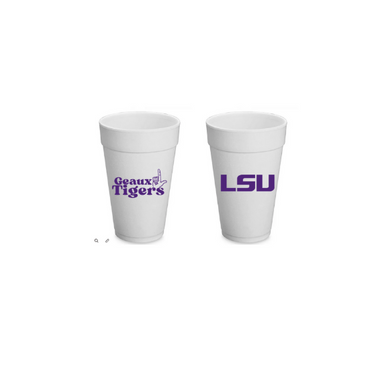View full detailsBring a taste of Tiger pride to your next gathering with these bold Geaux Tigers! 20-ounce Styrofoam cups! Featuring the iconic "Geaux Tigers!" cha...
