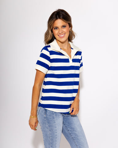 View full detailsElevate your game day wardrobe with our Classic Striped Button Up Top! Featuring a button-front design and timeless stripes, this top scores big on...