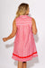 Make a bold statement with this sleeveless collared dress featuring vibrant orange-red and crisp white stripes. The playful red scalloped trim and chic button-down neck bring all the charm, keeping you cool and confident whether you’re cheering from the stands or celebrating post-win. Totally touchdown worthy!