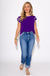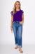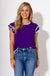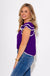 Game Day Ruffle Sleeve Contrast Piping Top in Purple