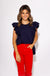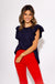 Cheer on your team in style with our Sweet Ruffled Sleeves Top in Navy! Crafted from cozy French Terry fabric, this top scores big with its double ruffled sleeves and scalloped edges—adding a feminine flair to your game day look. Whether you're tailgating, watching from the stands, or celebrating the win, stay comfortable and chic all day long. Elevate your fan wardrobe and show off your spirited style!