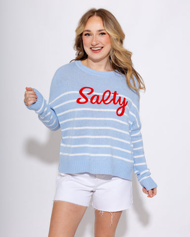 Get into a nautical state of mind with the "Salty" Relaxed Fashion Fit Sweater. Featuring playful lettering and classic stripes, this cozy pullover...
