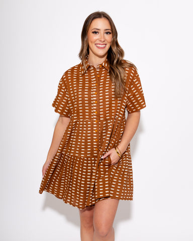 View full detailsA dress as charming as its name—meet the Ginger Snap. This mini dress is a playful mix of Ivy Jane's signature prints, combining a vertical blue sc...