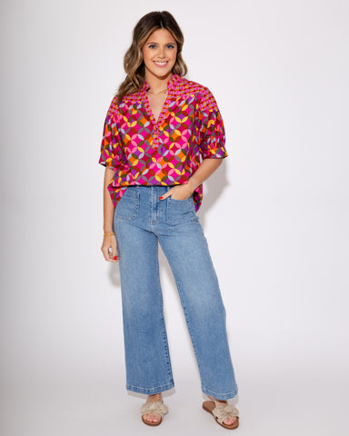View full detailsMake a bold, playful statement in our Solar Bloom Top—a standout piece that’s full of personality. Featuring a vibrant abstract starburst pattern i...