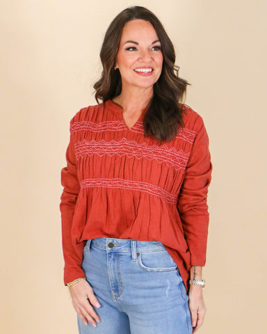 View full detailsDon't miss out on the Wait For Me Top in rust! This stunning top features a beautiful rust color that will make you stand out from the crowd. The f...