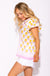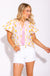 Let your wardrobe bloom with this floral border block print top in soft lilac, cheerful yellow, and crisp white. Made from a lightweight, breezy material that feels as good as it looks, this short sleeve blouse is perfect for sunny days and easy layering. The split neck with a delicate tie adds a touch of charm, while the block print design brings a fresh, artisan feel. Pair it with denim, white pants, or flowy skirts for an effortlessly feminine look.