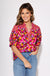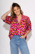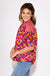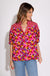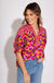 This colorful beauty features a bold magenta base woven with a playful mix of geometric patterns in pinks, yellow, orange, green, rust, and purple. The puff sleeves bring a touch of volume for that feminine flair, while the split neckline adds just the right hint of ease and elegance. Whether you're styling it with white denim or cutoff shorts, this top brings the feel-good vibes every time you wear it.