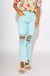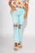 Introducing The Cool Mint Distressed Jeans! These high rise, knee distressed straight pants are a must-have for any fashion-forward individual. Made with comfortable and durable materials, these jeans will give you a stylish and edgy look while providing a comfortable fit. Upgrade your wardrobe today!